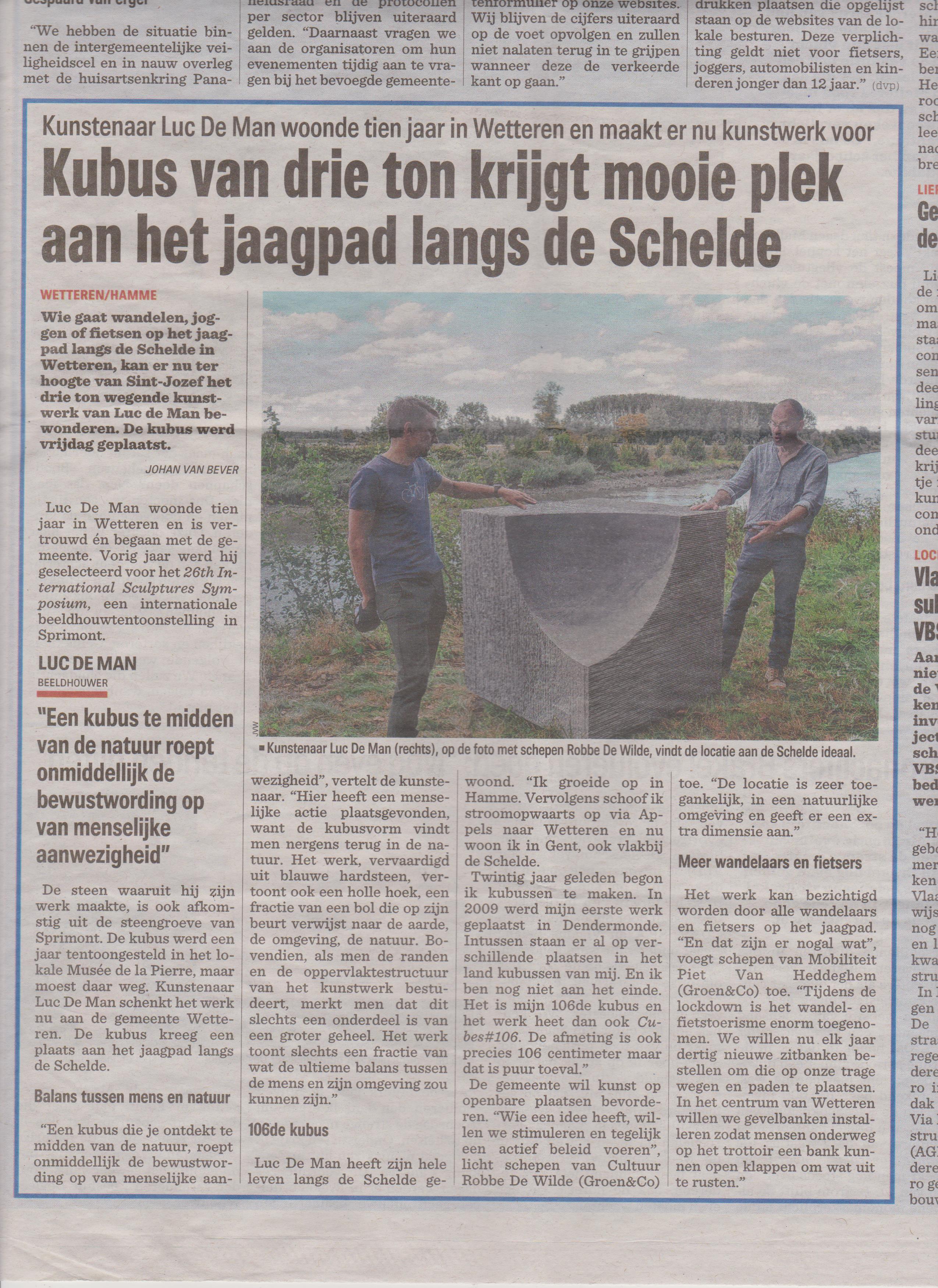 - 'Kubus van drie ton krijgt mooie plek aan het jaagpad langs de Schelde', Het Nieuwsblad, 25 aug 2020
