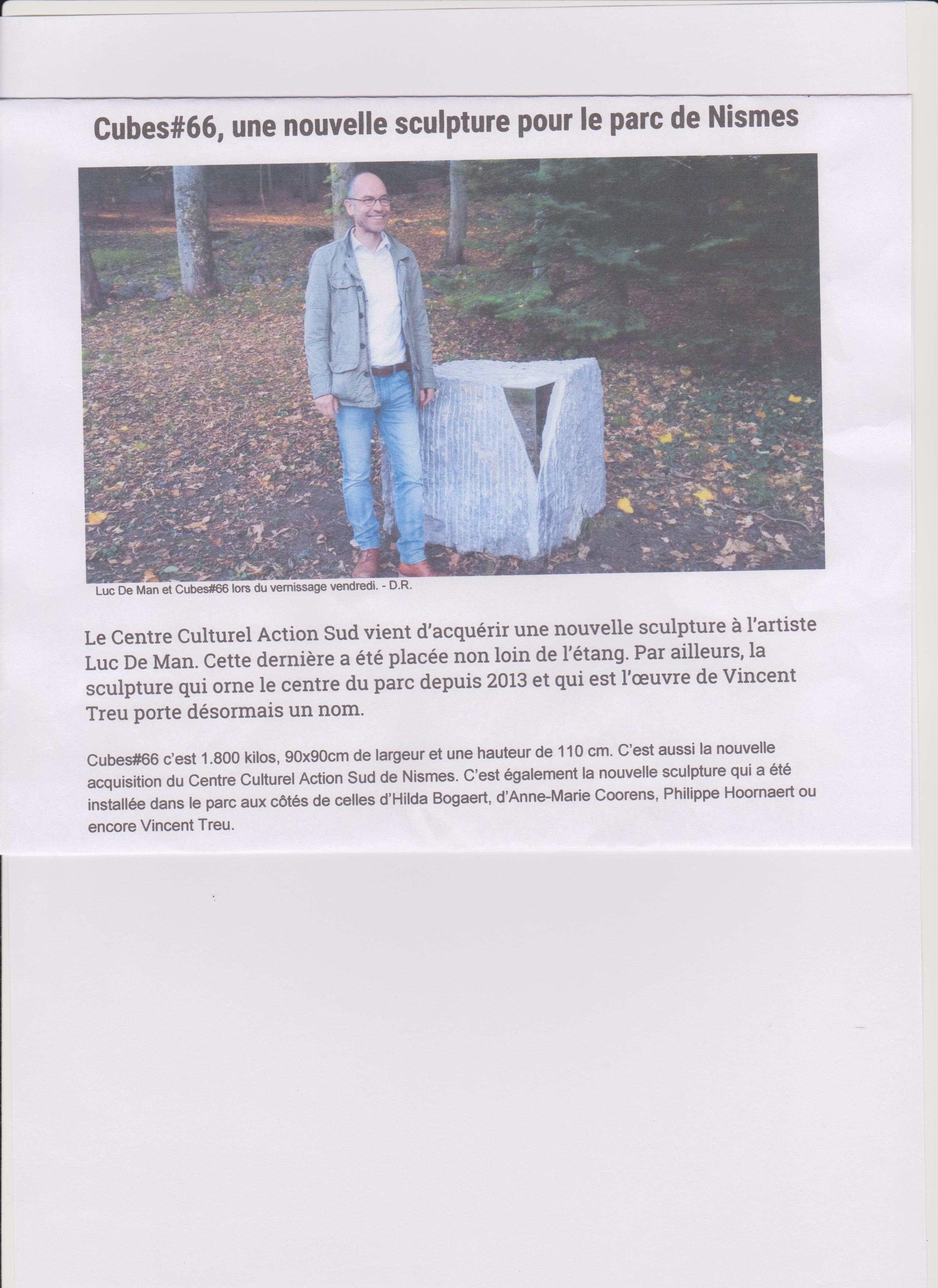 - 'Cubes #66, une nouvelle sculpture pour le parc de Nismes', La Nouvelle Gazette, 8 oct 2018