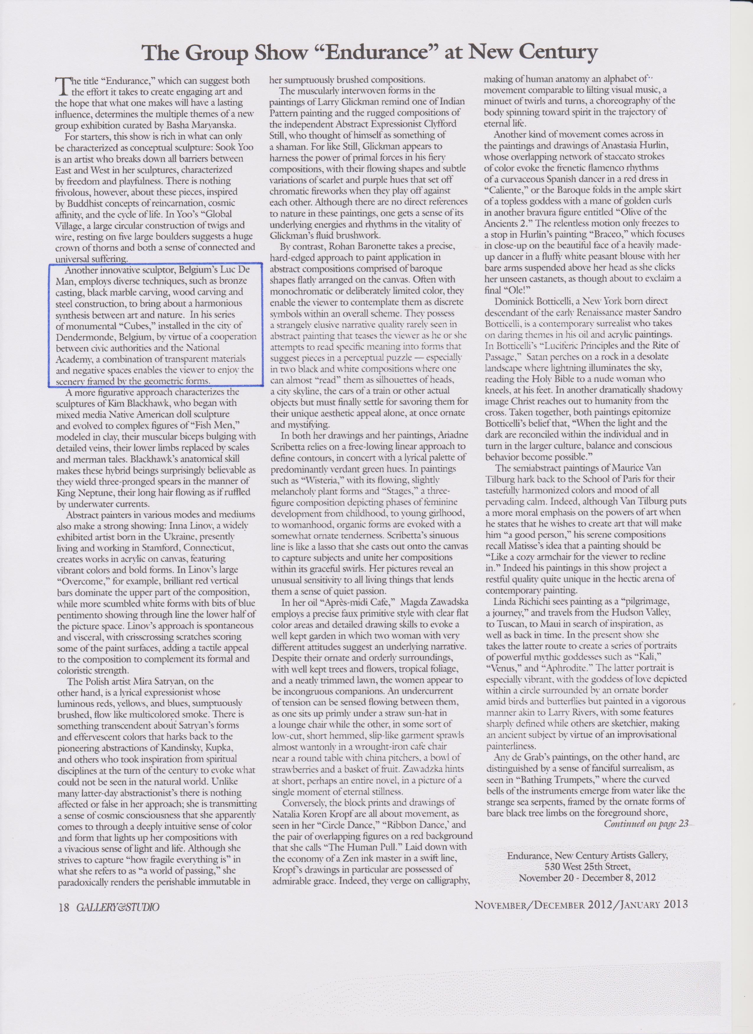 - 'The Group Show "Endurance" at New Century', Gallery&Studio New York, nov 2012