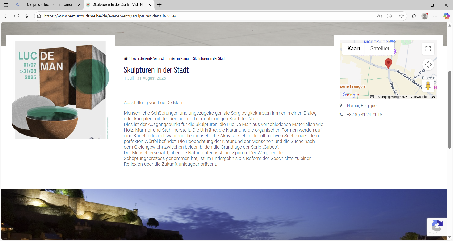 - L'artiste gantois Luc De Man exposes ses oeuvres géométriqes dans le centre-ville de Namur, l'Avenir, 1 juillet 2025